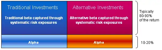 Researcher Lars Jaeger says that the return from an investment mainly results from exposure to systematic risk factors. These exposures can take two basic forms: long only "buy and hold" exposures and exposures through the use of alternative investment techniques such as long/short investing, the use of derivatives (non-linear payout profiles), or the employment of leverage)[1]