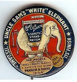A month before the election, Parker became aware of the large volume of corporate donations Cortelyou had solicited for the Roosevelt campaign, and made "Cortelyouism" a theme of his speeches, accusing the president of being insincere in previous trust busting efforts.[23] In late October, he also went on a speaking tour in the key states of New York and New Jersey, in which he reiterated the president's "shameless exhibition of a willingness to make compromise with dignity".[24] Roosevelt, enraged, released a statement calling Parker's criticisms "monstrous" and "slanderous".[25]