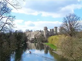 With the accession of Elizabeth I in November 1558, Robert Dudley came into great favour and was made Master of the Horse. Ambrose Dudley received the post of Master of the Ordnance, though he pressed his influential brother to delay the appointment somewhat, so that he could not be held accountable for his predecessor's embezzlement of funds.[19] When their attainder had been lifted in 1558, the Dudley brothers had renounced any rights to their father's possessions or titles.[1] Yet on 25 and 26 December 1561, Ambrose Dudley was created Baron Lisle and Earl of Warwick, and the next year received a large portion of the lands confiscated from the Duke of Northumberland.[20] Warwick Castle—which the Queen visited on her 1572 summer progress—became his seat, while the neighbouring Kenilworth Castle became that of Robert Dudley.[21] Like their father, Ambrose and Robert Dudley adopted the bear and ragged staff, the heraldic device of the medieval Earls of Warwick.[1]