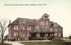 The Tomah Indian Industrial School, which opened in 1893, was an off-reservation, government boarding school in Wisconsin located along a main railroad that connected Chicago, Milwaukee and St. Paul. It provided education for children from the Ho-Chunk Nation of Wisconsin, who were referred to at the time as the "Winnebago" by white settlers. The boarding school was the vision of white policy makers and administrators. As the first school of its kind to exist in Wisconsin, it was esteemed for its literary education and religious influences. Most students were members of the Ho-Chunk Nation, but the school also served Ojibwe, Oneida and Menominee students from reservations in Wisconsin.[15] A 2024 report from the Department of the Interior stated that they had identified at least one child who died during their time as a student.[5]
