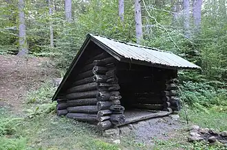 The American Legion State Forest was established in 1927, as a gift to the state by the local chapter of the American Legion, and grew to reach more than 700 acres (280 ha) in the following decade. The forest was the site of CCC Camp White from 1933 until 1941. The crews were mostly involved with building roads and trails, but also built four of these shelters. This one was the only one located with the American Legion Forest; the other three, which have not survived, were located in Peoples State Forest, located across the West Branch Farmington River to the east. It is similar in form to the Cream Hill Shelter and Red Mountain Shelter, two other surviving shelters built by other CCC crews on what was then the route of the Appalachian Trail.[2]