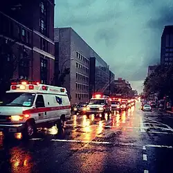 AMR provides and sponsors on-track safety and crash response services at NASCAR, IndyCar, and IMSA automobile races, sponsoring them since 2017, 2018, and 2019 respectively.[13][14][15] AMR's motorsports safety crews travel to races, and consist of at least 18 personnel, including doctors, emergency medical technicians, rescue and cleanup specialists.[16][17] Using trucks equipped with specialized medical equipment and hydraulic rescue tools, AMR's crews are reportedly capable of responding to on-track crashes within seconds.[16]