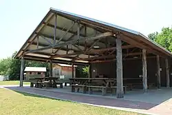 The C. A. Nothnagle Log House, located in Gibbstown, New Jersey, was constructed in 1638 and is believed to be the oldest surviving log house in what is today the United States. The house was built by colonial settlers in what was then the Swedish colony of New Sweden.[4]