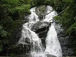 Ammons Creek Falls is a waterfall located in the Tallulah Ranger District of the Chattahoochee National Forest in Rabun County, Georgia that cascades for over 100 feet. There is 1.75 mile loop hiking trail that provides access to both nearby Holcomb Creek Falls and Ammons Creek Falls. There is a wooden observation deck for viewing the falls.