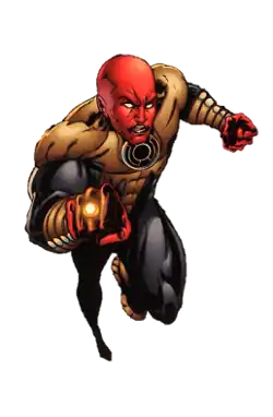 Years later, Amon confronts Hal Jordan, who has returned to the Green Lantern Corps after being freed from the influence of Parallax. Jordan defeats Amon, who is recruited into the Sinestro Corps.[1] Amon is later killed by Laira, and his power ring attempts to find a new wielder before the Guardians destroy it.[2][3]