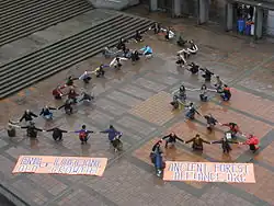 The Ancient Forest Alliance has organized one rally, which was held in downtown Vancouver on March 27, 2010. About 100 supporters marched from Canada Place to the Vancouver Art Gallery, making demands for the BC government to protect endangered old growth forests and support sustainable logging of second growth forests.[36] The rally borrowed images from the blockbuster hit Avatar, with numerous people painted as characters from that movie.[37][38]