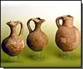 Chickpea cultivation dates back to the Bronze Age (3300 – 1200 BCE)[8] and grapes and olives became important crops in the hill country. Wine and oil were traded for wheat with the cities on the coastal plain, and for meat and skins with semi-nomadic herders. Wine and carobs were also exported to Egypt during this period. At Arad in the northern Negev, the remains of wheat, barley and legumes have been found, along with stone-lined storage pits for grain from this period. Pottery was imported from Cyprus and Mycenae in Greece for the first time, probably for use as good-quality tableware. After the Bronze Age collapse of urban culture, there was an increase in herding and the disappearance of smaller agricultural communities.[7]