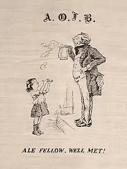 The Ancient Order of Froth Blowers was a humorous British charitable organisation "to foster the noble Art and gentle and healthy Pastime of froth blowing amongst Gentlemen of-leisure and ex-Soldiers". Running from 1924 to 1931, it was founded by Herbert Longdale Temple, an ex-soldier and curtain-merchant, initially to raise £100 (equal to £7,204 today) for the children's charities of the surgeon Sir Alfred Fripp. One of the Order's first meeting places was the Swan, Fittleworth, W. Sussex; the 'No. 0 Vat'.[1]