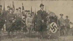 Schmidt claimed that by 1935, three years later, he was part of the party leadership in the German People's Party.[9] This occurred after a power struggle in 1935 when the Nazi movement around the relatively moderate fascist group, the self-help movement created by Fritz Fabritius, split creating the radical German People's Party under Alfred Bonfert and Waldemar Gust and more moderate Nazis around Fabritius,[10][11] but he did not take a leading role in either.[1]