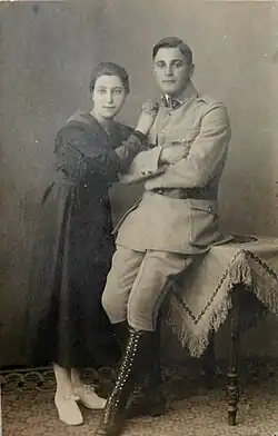 Merkel's paternal grandparents when engaged: Margarethe and her betrothed, Ludwik Marian Kaźmierczak, in his Polish Blue Army uniform