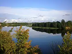 The Angiriai Reservoir is an artificial lake in Kėdainiai District Municipality, central Lithuania. It is located 7 kilometres (4.3 mi) north-west from Josvainiai town. It was created in 1980, when a dam on the Šušvė river had been built next to Angiriai village. In 2000, the dam was reconstructed and a small hydroelectric plant built.[2]