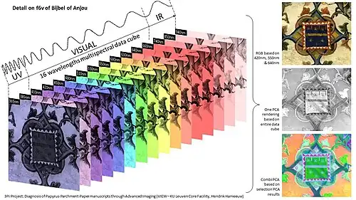 The Anjou Bible is being examined and conserved in the Book Heritage Lab (Expertisecentrum voor Onderzoek en Conservering van Documentair Erfgoed) KU Leuven, a multi-year project led by Lieve Watteeuw in collaboration with the Core Facility VIEW, the Royal Institute for Cultural Heritage, and the Imaging Lab of KU Leuven Libraries.