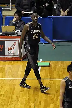 In 2013 he was selected in the first round of the Korean Basketball League draft by Busan KT Sonicboom.[32] He was an all-star selection for the 2013–14 season,[33] during which he played for two teams. He initially played for the Busan KT Sonicboom, where in 23 appearances he averaged 17.7 points, 5.4 rebounds, 2.4 assists and 1.1 blocks, and then signed for the Goyang Orions where he ended the season playing 33 more games, recording 14.2 points and 5.3 rebounds. During the 2014 all-star game in the KBL he won the slam dunk contest.[34] His last professional experience was the 2014–15 KBL season, played with the Wonju DB Promy, where in 63 games he averaged 10.8 points, 3.7 rebounds and 1.2 assists in 15.5 minutes per game.