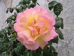 In 1939, just months before Germany's invasion of France, Francis sent cuttings of a promising rose cultivar to fellow rose growers in Germany, Italy, and Turkey, and also to the Conard-Pyle company in the U.S. Francis named the pink and yellow blend rose, ‘Madame Antoine Meilland,’ after his late mother, Claudia, who had died in 1932. In the U.S., the new rose was successfully propagated. It was later introduced on April 29, 1945, on the same day that Berlin surrendered to Allied forces. The rose was given the marketing name, 'Peace', in the U.S., to mark the end of the war. It was an immediate commercial success and sold extremely well worldwide.[8][9]