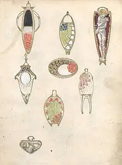From 1900 on, Krautheimer studied in Munich at the Academy of Fine Arts. His teachers were Josef Eberle, Wilhelm von Rümann and Adolf von Hildebrand. During his studies, he worked for the jewelry manufacture Victor Mayer in Pforzheim/Germany as a jewelry designer and steel engraver. The archive there preserves photographs of jewelry after his designs, his drawing-book with designs of Art Nouveau jewelry and many copies of letters that Victor Mayer wrote to him.