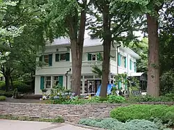 In 1939, Raymond's architectural practice in the United States began with the purchase and conversion of his farm and studio in New Hope, Pennsylvania. He and his wife's goal was to "create a physical and intellectual environment that mirrored and supported their approach to modern design, one that synthesized International Style developments with lessons learned from Japan's craft tradition".[28] They hoped that the lifestyle and design ethos that they would create, would be simpler and more in tune with nature, similar in set up to Frank Lloyd Wright's Taliesin Fellowship.