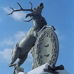 When, in 1806, Württemberg became a kingdom King Friedrich I commissioned his royal sculptor Isopi, who had been raised to knighthood, to create monumental sculptures of the two heraldic animals, stag and lion. New power required new demonstration of power. In a technically complicated procedure, after five years of experimenting and producing, Isopi, assisted by his pupil Ernst Mayer, succeeded in creating two huge sculptures, which were to be placed in front of the royal castle. It was a piece of pioneer work in iron casting.