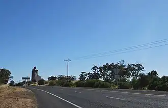 Antwerp railway station and sidings on the Dimboola to Jeparit railway line opened in June 1894.[7] Passengers were carried on mixed goods/passenger trains pre-war (six days per week in 1928).[8] The railway line was converted from broad to standard gauge in 1995.[9]