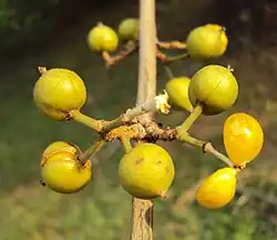 Aporosa cardiosperma is a species of plant in the family Phyllanthaceae. It is endemic to South-West India and Sri Lanka. The fruit has two seeds covered with sour gelatinous pulp that is fed on by birds (and edible for humans[2]) which disperse the seeds.[3] In the Western Ghats of India, the thin stems of the tree are often galled by Cecidomyiidae. An echinate gall formation has also been noted in Kerala.[4]