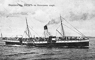 Apostol Piotr entered service in 1906. The name of the vessel referred to the popular saint in northern Russia. The first captain of the steamer was Fyodor Matveyevich Ryukhin. The ship operated on Lake Onega and nearby waterways in scheduled voyages, also transporting pilgrims to Valaam island to the monastery located there.[6] The ship spent winters mainly on the Svir river, where the company had workshops. During this time, the entire crew, except for the mechanics, was sent home, while the mechanics carried out minor repairs. A major overhaul in St. Petersburg was necessary as early as 1906, due to the crew's unfamiliarity with the modern mechanisms of the vessel.[7]