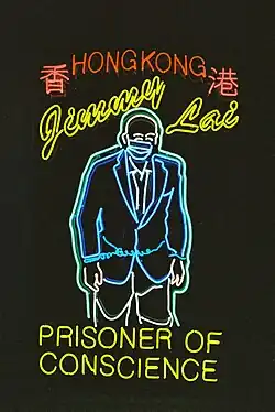 - ^ a b c d "【聲援黎智英】澳洲人創作「鐵鏈中的黎智英」霓虹燈現雪梨街頭". SBS Australia (in Chinese). 20 September 2023. Retrieved 2025-04-01.