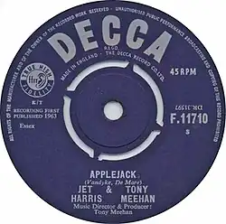 "Applejack" is an instrumental by Jet Harris and Tony Meehan, released as a single in August 1963. It peaked at number 4 on the UK Singles Chart.[2]