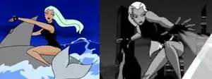 - An original, futuristic incarnation of Aquagirl named Mareena appears in series set in the DC Animated Universe, voiced by Jodi Benson.[21] This version is a member of a future Justice League and daughter of Aquaman and Mera who possesses hydrokinesis. Introduced in the Batman Beyond episode "The Call", Mareena later makes a non-speaking appearance in the Justice League Unlimited episode "Epilogue".[21]