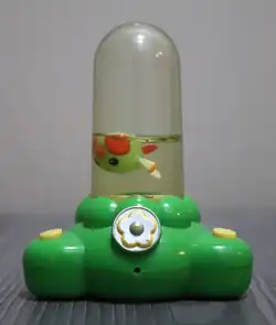 Aquapets are interactive, electronic toys that were introduced in the US in 2004 by Wild Planet. They consist of a transparent, water-filled case housing a thumb-sized figure, and a base with a microchip, microphone, and speaker to register and respond to sounds made by kids or by other Aquapets. Each character has its own look, sounds and songs and responds with movement and melody. The more a child plays with their Aquapets, the more songs they will perform and the livelier they will become.