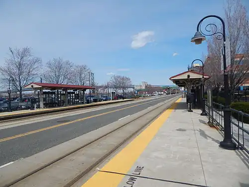 The station opened on March 15, 2004.[1] Southbound service from the station is available to the line's terminus at Entertainment Center. Northbound service is available to the Walter Rand Transportation Center in Camden, with transfer to the PATCO Speedline Philadelphia, Pennsylvania. With intermediary stops the line continues to Trenton Transit Center served by New Jersey Transit, SEPTA trains, and Amtrak trains.