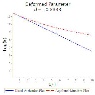 This definition was first used in thermodynamics and statistical mechanics by Landau.[5] In the most recent scientific literature, there is a variety of deformed algebras with applications in different areas of science.[6][7] Considering the d-exponential function, we introduce the deformed reaction rate coefficient, , in the following way,