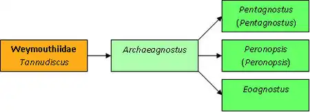Archaeagnostus is an extinct genus from a well-known class of fossil marine arthropods, the trilobites. It lived from the terminal Toyonian to early Amgaian. Species belonging to this genus have been found in Eastern North America, the Newfoundland in Canada, the Henson Gletscher Formation in Greenland, the Nekekit and Molodo Rivers in Eastern Siberia, and in Guizhou, China.[1]
