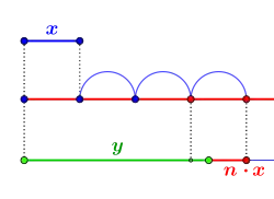 Let x and y be positive elements of a linearly ordered group G. Then is infinitesimal with respect to (or equivalently, is infinite with respect to ) if, for any natural number , the multiple is less than , that is, the following inequality holds: