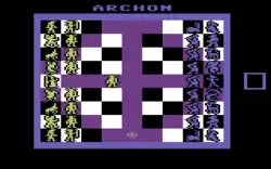Archon: The Light and the Dark is a 1983 strategy/action video game developed by Free Fall Associates and one of the first five games published by Electronic Arts. It is superficially similar to chess, in that it takes place on a board with alternating black and white squares, but instead of fixed rules when landing on another player's piece, an arcade-style fight takes place to determine the victor, and each piece has different combat abilities. The health of the player's piece is enhanced when landing on a square of one's own color.