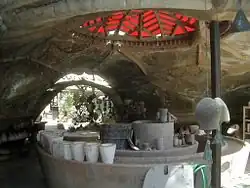 The cafe's dining area, two stories below the Arcosanti Visitors' Center and Gallery