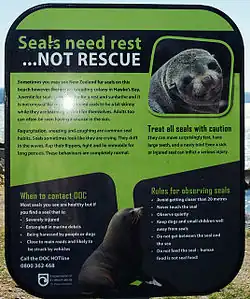 In New Zealand, the species is protected by the Marine Mammals Protection Act 1978, which works to conserve marine animal species; it specifies that all wild pinnipeds cannot be touched or fed.[1]