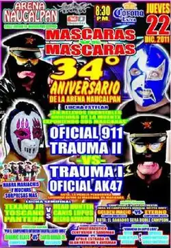 - ^ a b c d Saavedra, Roman Farid (December 23, 2011). "IWRG: Oficial AK-47 pierde la mascara ante Trauma I". Súper Luchas (in Spanish). Retrieved December 23, 2011.