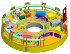 The upper-stage simulator (USS) was manufactured by NASA personnel at Glenn Research Center in Cleveland.[9] Because of transportation limitations (bridge heights on highways and rivers), the simulator was built out of eleven steel segments 9.5 feet (2.9 m) tall by 18 feet (5.5 m) wide. The USS simulated the shape, mass, and center of gravity characteristics of Ares I from the interstage to the top of the service module of the Orion Crew exploration vehicle. The centers of mass for the liquid hydrogen and liquid oxygen tanks were simulated through the use of steel ballast plates.[6]: 7