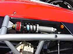 The Atom's suspension derives from single seat racing cars and is fully adjustable, requiring only a wrench. Both front and rear double unequal length wishbones and inboard, pushrod-operated dampers contribute to the Atom's dynamic handling. Adjustable suspension rod ends feature inboard rubber/metal bushings to promote a more comfortable road-going ride. The front and rear Bilstein dampers are also adjustable. Stacked helper coil springs and main coil springs produce a low spring rate for minor deflections and a higher rate for large ones.