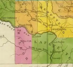 - ^ Rex W. Strickland, "Anglo-American Activities in Northeastern Texas 1803–1845" (unpublished Ph.D. dissertation), University of Texas, 1937, 95–96, 101–102, 170–175; Rex W. Strickland, "Miller County, Arkansas Territory, The Frontier that Men Forgot." Chronicles of Oklahoma, XVIII (March, 1940), 12: Grant Foreman, Indians & Pioneers (Norman, 1936), 230: Arkansas Acts. 1827, pp. 10–11.