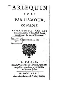 ![]() Front page of 1723 Edition of Arlequin poli par l'amour | |