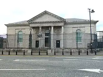 The courthouse underwent a complete reconstruction in the mid-1960s and by 1971 the plasterwork, staircase, balusters and most of the woodwork had been replaced.[3] On 3 September 1993, a 1,000 lb bomb exploded directly outside the courthouse causing major structural damage to the roof, façade and walls.[3] The main courtrooms were damaged and in the force of the blast one of the pillars was moved back a full 9 inches. An extensive programme of reconstruction and enlargement, with a new 3-storey extension added to the rear, was carried out at a cost of £8 million and the courthouse was officially re-opened by Lord Irvine, the Lord Chancellor, on 15 January 1999.[8][9] The courthouse was the venue for the trial and conviction of Robert Black for the murder of Jennifer Cardy in September 2011.[10][11]