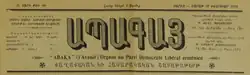 | Azatamart[17][12] (by Shahan Natalie) | Ազատամարտ | "Free Struggle" | Weekly | 1928-1929 | Paris | |