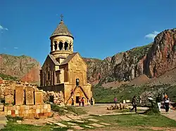 Armenian church architecture is the architectural style of the Armenian church buildings created since the Apostolic era of Christianity in the Armenian Highland during the 1st century. It was developed over the last 1900 years. According to professor Dickran Kouymjian (Ph.D. in Armenian Studies from Columbia University),[1] the unique national style of Armenian church architecture came into being by the late 6th or early 7th century, probably becoming the first national style in Christian architecture, long before the Byzantine, Romanesque and Gothic or the less known Ethiopian, Scandinavian and Slavic styles were concretely formed.[2]