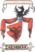 Coat of arms of the Cernovich (17th century) The Cernovich or Crnojević, were a noble family of feudal lords that ruled over the territory in what is now southern Montenegro and northern Albania, during the late 15th century.[20] Their coat of arms is depicted in the 17th century Fojnica Armorial.[21]