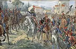 Armée d'Italie participated in the war of the Third Coalition (1805), in the battles of Verona and Caldiero in northern Italy, under André Massena. During the war of the Fifth Coalition (1809), Armée d'Italie was commanded by Eugène de Beauharnais, and fought the Austrians at Sacile, Caldiero, Piave, and Raab. In 1813–1814 Eugéne fought the Austrians with his army in northern Italy (Battle of Mincio).[3]