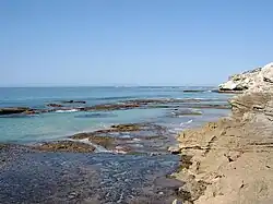 On 29 May, land was sighted to the north at 7 am, and given the dead reckoning estimates, was presumed to be the Cape of Good Hope. The ship sailed west until 4:30 pm on 29 May, then turned north to run for St Helena. However the land sighted had in fact been Cape Agulhas (then known as "Cape L'Agullas") and the ship had also not made good headway against the current since this sighting. Compounding these navigational errors, the master had not taken any depth soundings (which would have confirmed his location over the Agulhas Bank), before heading north.[7] Consequently, instead of being 100 miles (160 km) west of the Cape of Good Hope as presumed, the ship was closing on the reef at Waenhuiskrans near Cape Agulhas. The anchors were unable to hold the heavy ship in the storm, so on 30 May near 4 pm, Lieutenant Brice advised Captain Simpson to ground the ship to save the lives of those aboard.[6] Eight minutes later, at about 8 pm, the ship struck rocks half a mile offshore and heeled into the wind. The guns on the opposite side were cut away in a failed attempt to level the ship, which soon started to break up in the waves.[6][17]