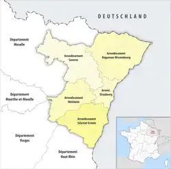 The five arrondissements of the Bas-Rhin department are:[1]