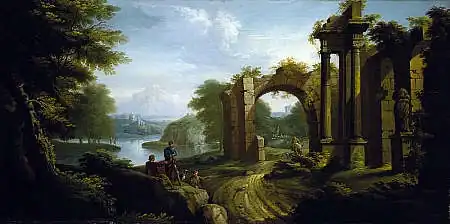 The growing importance of royal art can be seen in the post of Painter and Limner, created in 1702 for George Ogilvie. The duties included drawing pictures of the Monarch's person, his successors and members of the royal family, for the decoration of royal houses and palaces. However, from 1723 to 1823 the office was a sinecure held by members of the Abercrombie family, not necessarily connected with artistic ability.[33] Many painters of the early part of the eighteenth century remained largely artisans, like the members of the Norie family, James (1684–1757) and his sons, Robert and the younger James, who painted the houses of the peerage with Scottish landscapes that were capriccios or pastiches of Italian and Dutch landscapes.[34] They tutored artists and have been credited with the inception of the tradition of Scottish landscape painting that would come to fruition from the late eighteenth century.[35] Italy became an important point of reference for Scottish artists, with many taking the Grand Tour there to paint, sample the art and learn from Italian masters.[36]
