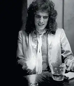 In Ezequiel Abalos' 1995 book Historias del rock de acá, Amaya recalled: "He felt abandoned because he wanted to continue playing with the band, as he was left alone and it was still pending to record another album with Microfón, he recorded Artaud with the songs he had for Pescado Rabioso. When I heard the album, I wanted to [die]."[12] As a result, Spinetta enlisted his brother Gustavo and former Almendra members Emilio del Guercio and Rodolfo García to play in the album.[13] Spinetta explained to Berti that he decided to release the album under Pescado Rabioso's name because he felt using his own would be "too pompous", and "to prove to the former members of the group that Pescado Rabioso was [him]."[14] The use of the band's name has also been described as a contractual obligation.[10][15] Artaud was recorded at studio Phonalex in the barrio of Belgrano, a few blocks from the Spinetta house.[16] Journalist Miguel Grinberg described the sessions as "a very private ceremony". According to Rodolfo García, the songs were "practically made in the studio" and recorded in few takes. He stated that in "Superchería" and "Las habladurías del mundo", "the concept with which the tracks were created was similar: to play them with absolute freedom [and] the biggest swing of which we capable".[1] Spinetta composed and recorded almost the entire album with a Harptone acoustic guitar that he called "the Standel".[nb 1] Lyricist Roberto Mouro has claimed that Spinetta used a Hagström electric guitar in "Todas las hojas son del viento",[18] while journalist Juan Carlos Diez recalled that the musician told him that he recorded the whole album with a mahogany-colored acoustic Gibson guitar.[19] Artaud was produced by publisher Jorge Álvarez for his label Microfón, a subsidiary of record company Talent. Álvarez had founded Microfón after the 1970 closure of his company Mandioca, the first independent record label of Argentine rock.[20][21][22] During the late 1960s and early 1970s, the circulation of Artaud's bibliography intensified and Álvarez played an important role in this process by publishing an anthology of the poet in 1968.[23]