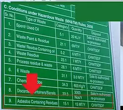 - IS 11768: Waste Disposal Procedure for Asbestos Containing Products.